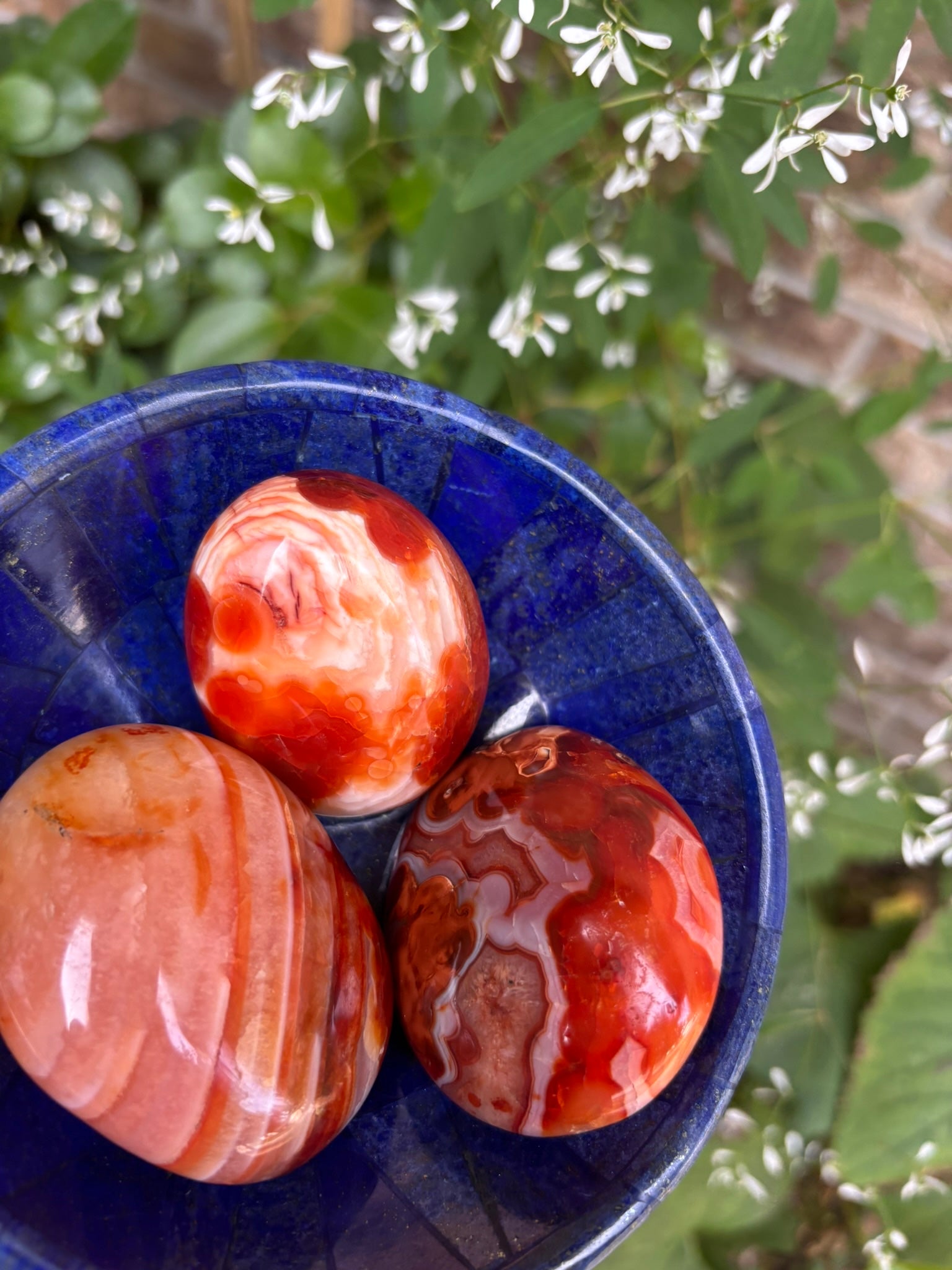 Carnelian's metaphysical properties include enhancing courage, confidence, creativity, and passion while providing motivation and energy. It is believed to attract prosperity, boost success, and promote spiritual growth by balancing the sacral chakra. This vibrant stone is also used to inspire a positive mindset, overcome self-doubt, and bring a sense of warmth and stability to the spirit.