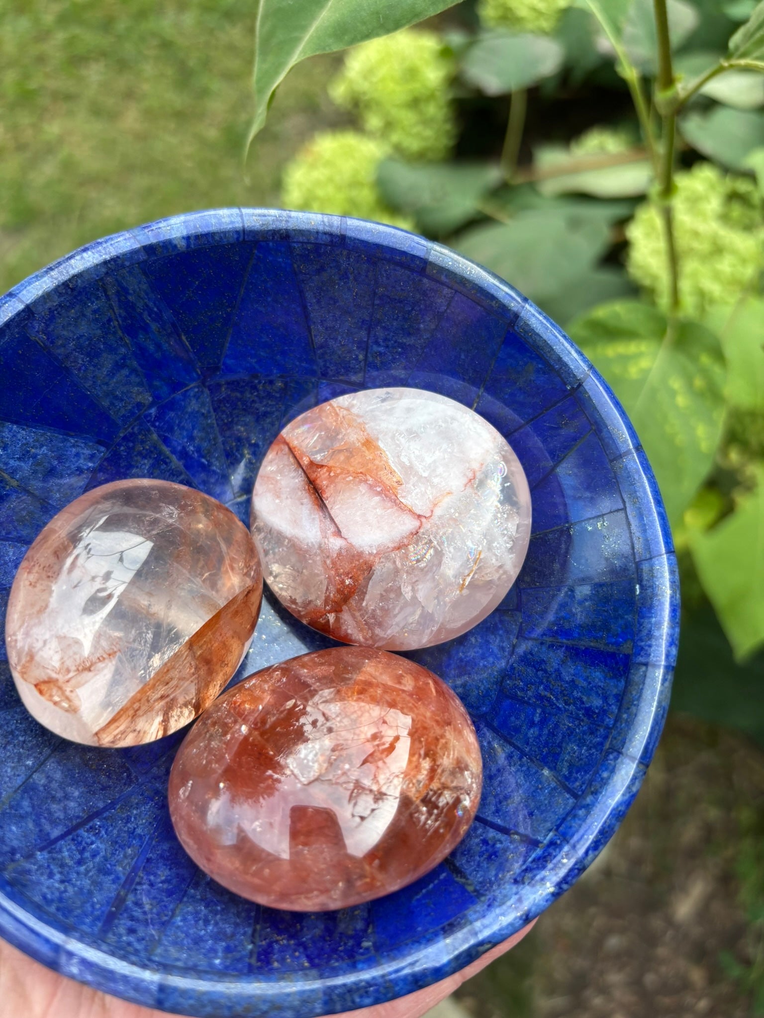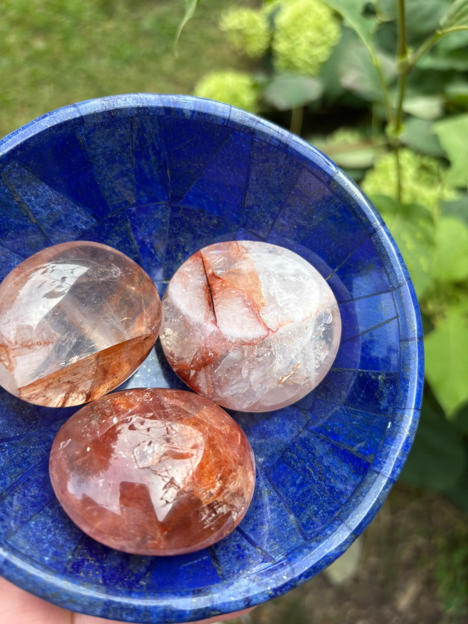 Fire Quartz, or Hematoid Quartz, combines the amplifying properties of Clear Quartz with the grounding energy of Hematite, offering metaphysical benefits like increased vitality, motivation, and resilience while grounding the self to combat anxiety and trauma. It stimulates the Root Chakra for stability and inspires creativity and passion by connecting with the element of fire. Fire Quartz is a powerful ally for transformation, aiding in the elimination of negative energy from the aura and supporting physical and mental healing by boosting the immune system and improving focus.