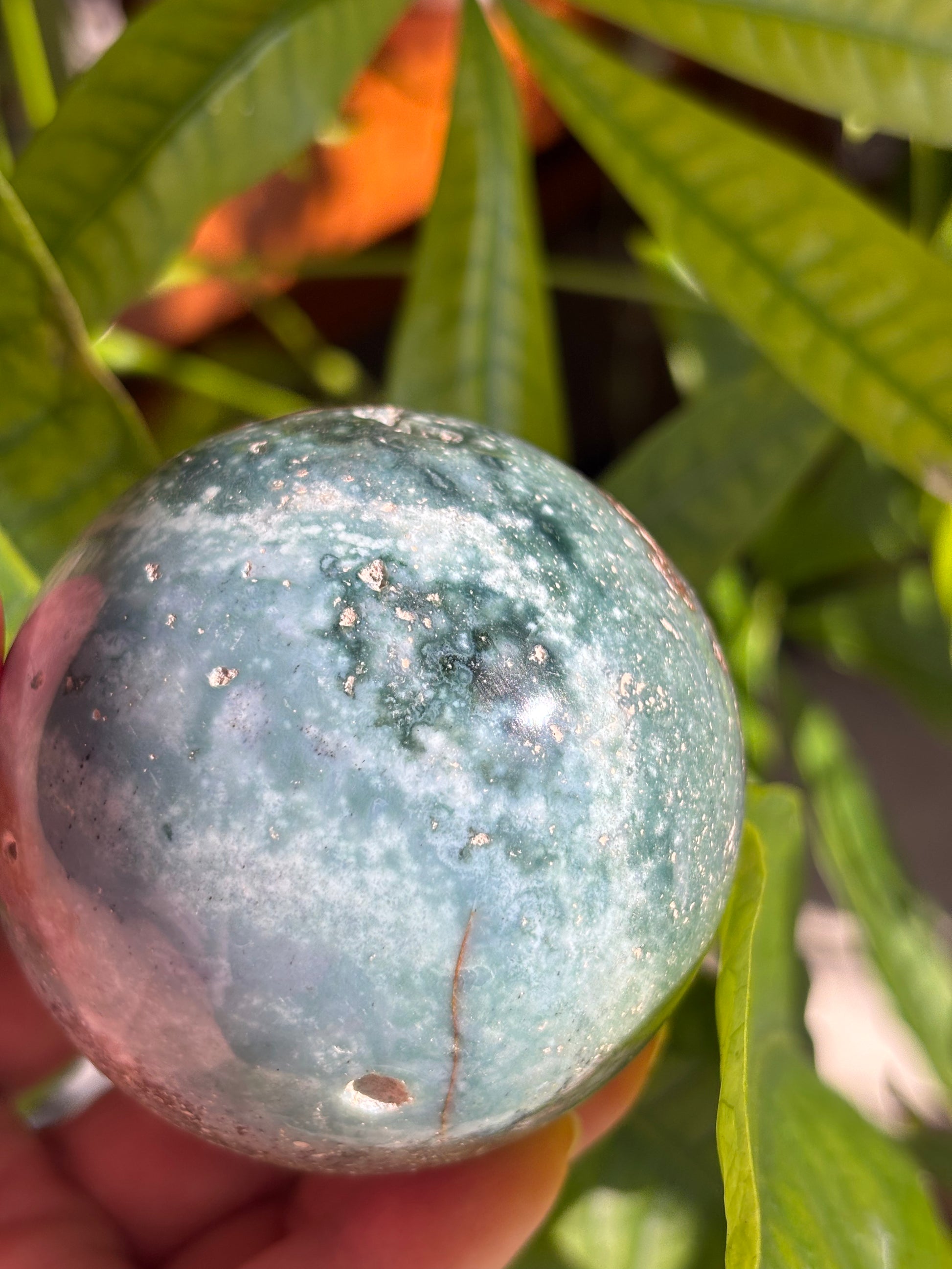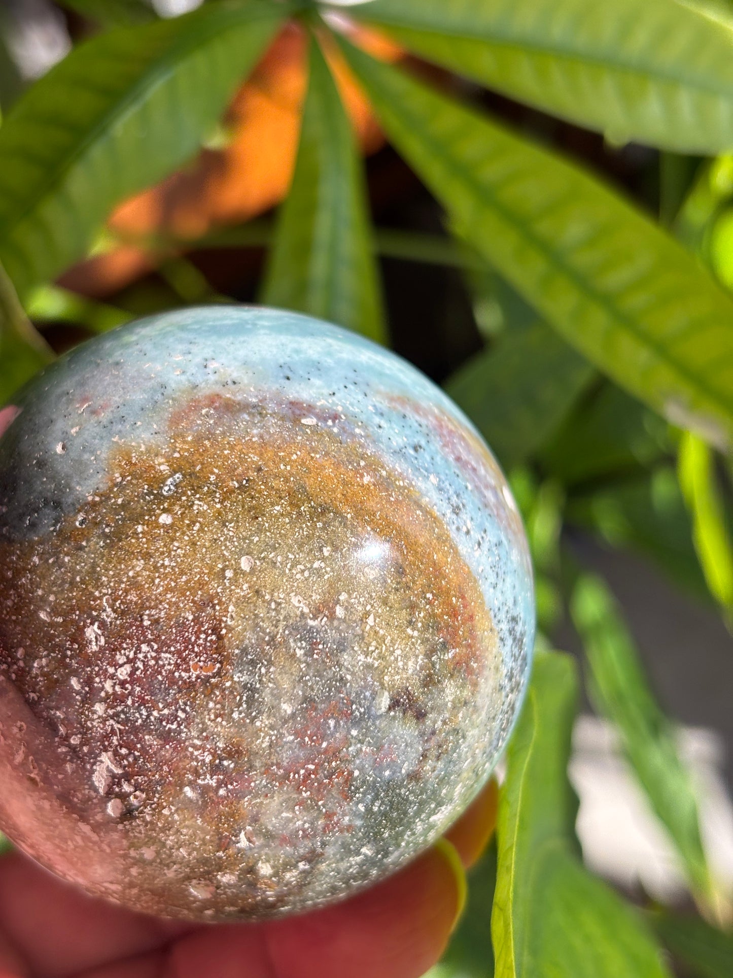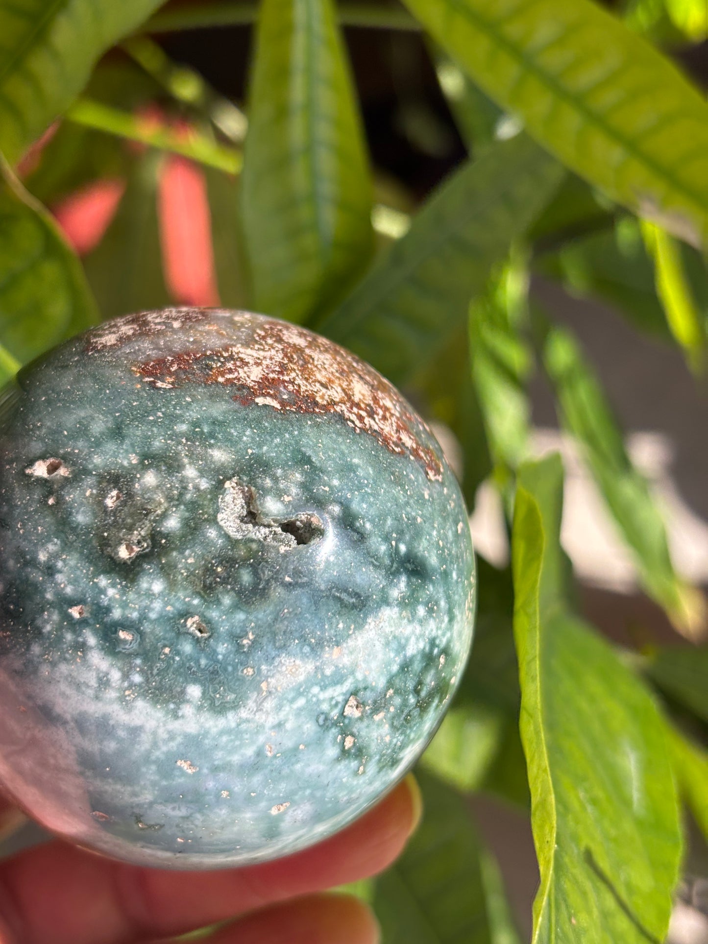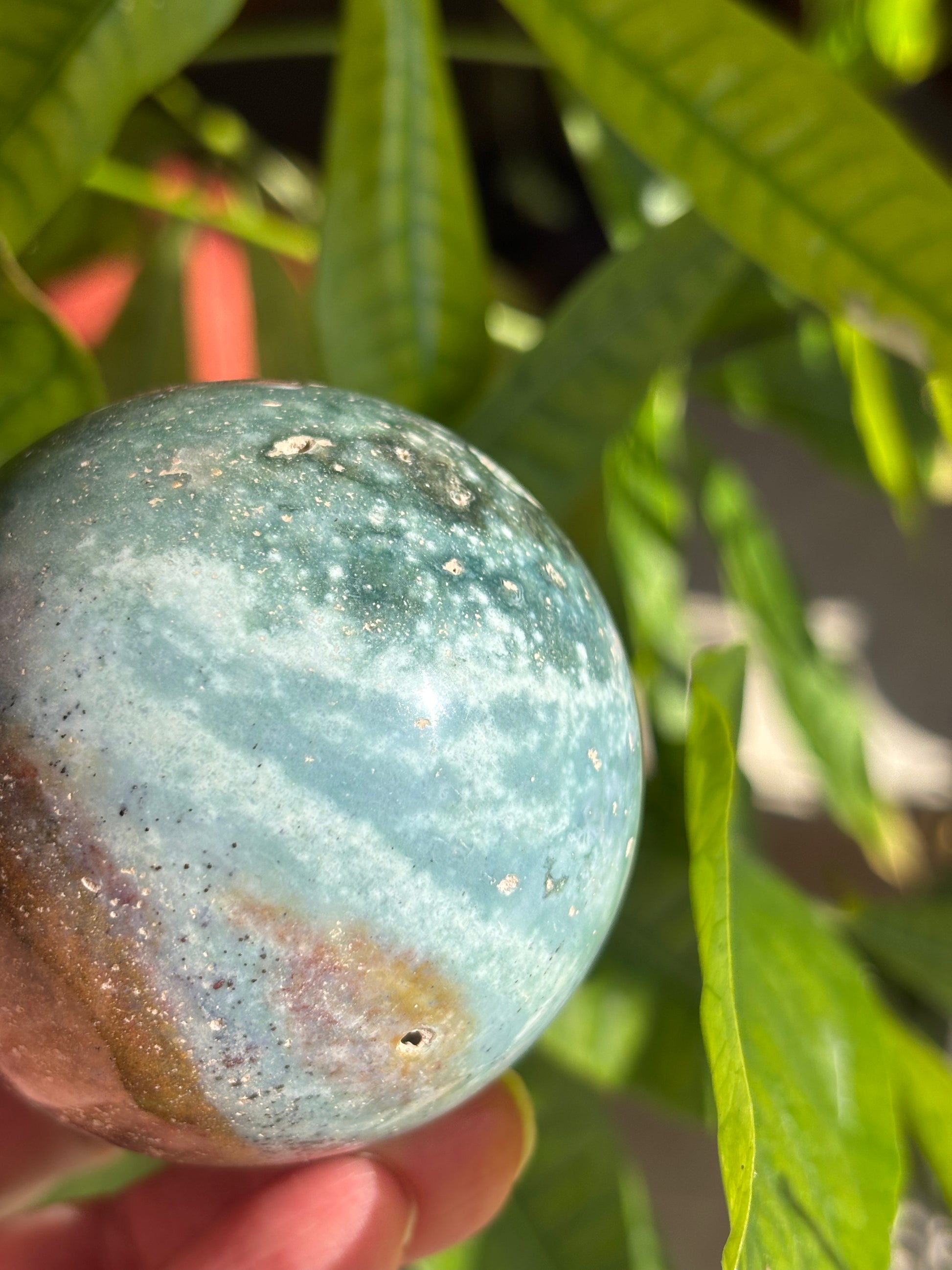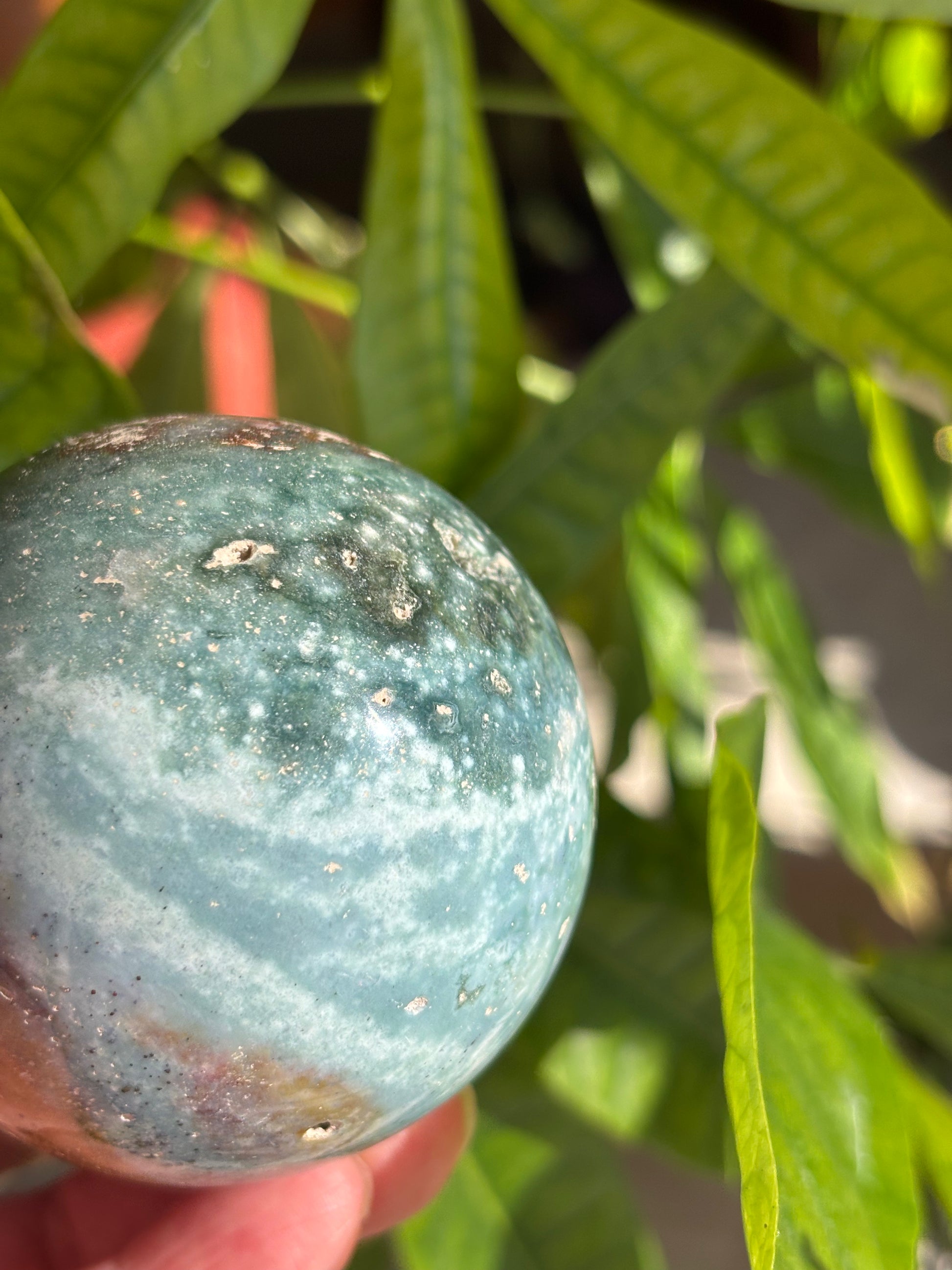 Ocean Jasper is said to provide calm, uplifting energy to the holder in trying times, feeding into a more optimistic outlook on life. The stone aids clearer communication, and enhances self-confidence as well as self-insight.